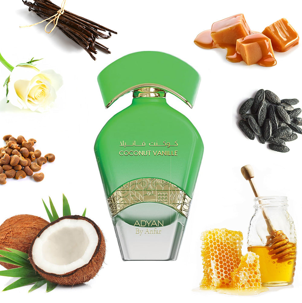 - Fragrance Notes: Caramel, Coconut, Vanilla, Coumarin, Honey, Musk, Rose, Ambrette.