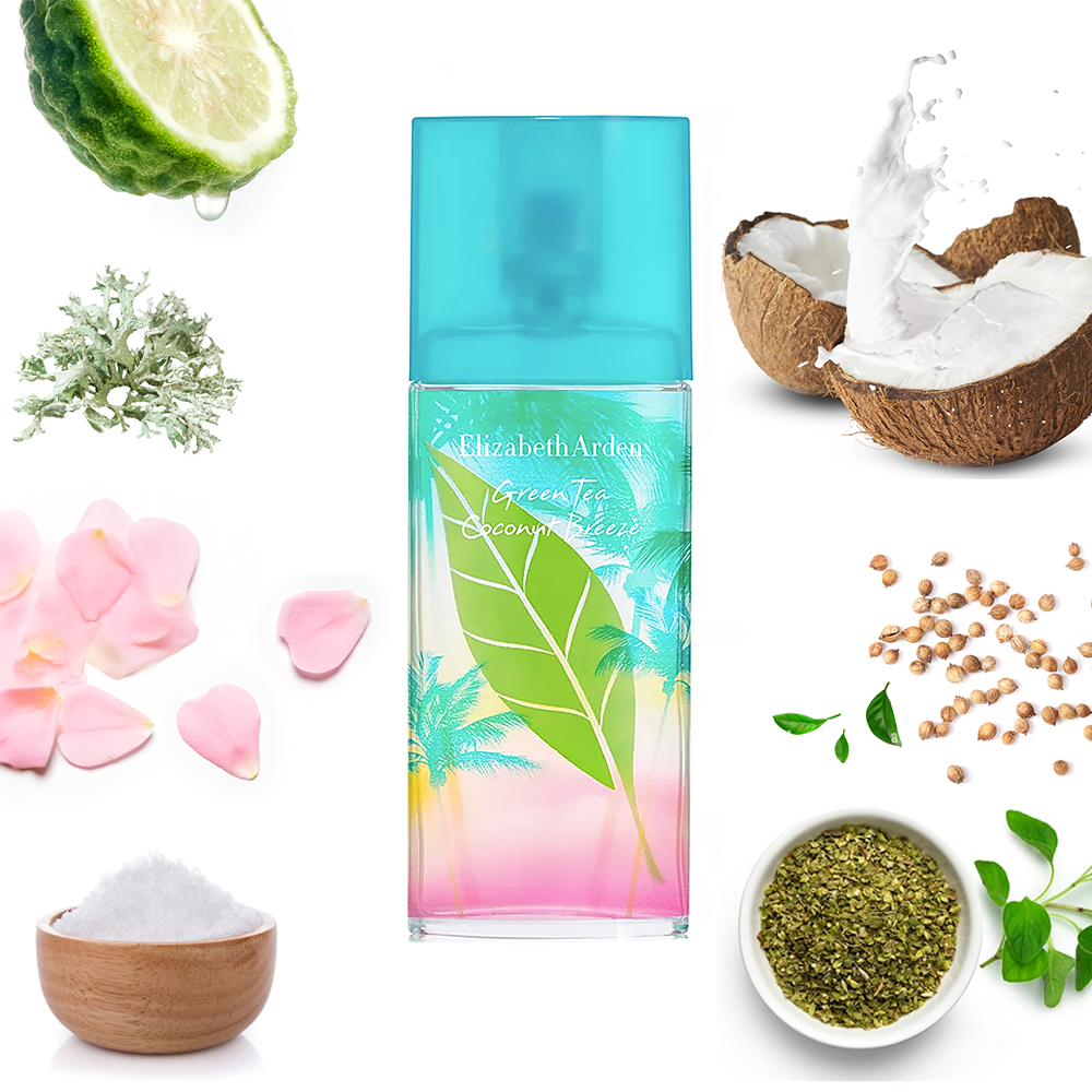 - Fragrance Notes: Coconut, Bergamot, Salt, Coriander, Green Tea, Petalia, Karmaflor (Floral notes), Mahonial, Musk, White Amber, Oakmoss.