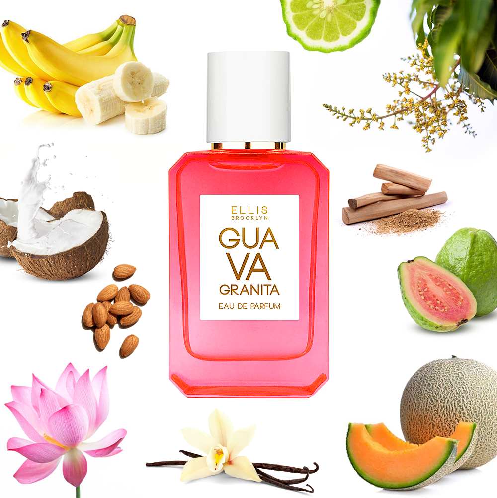 - Fragrance Notes: Guava, Banana, Water Lily, Bergamot, Coconut, Melon, Mango Blossom, Vanilla, Almond Milk, Sandalwood.