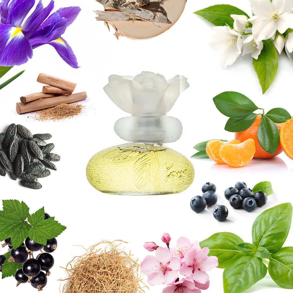 - Fragrance Notes: Basil, Black Currant, Mandarin Orange, Magnolia, Honeysuckle, Jasmine, Japanese Cherry Blossom, Iris, Blackberry, Vetiver, Cedar, Sandalwood, Tonka Bean.