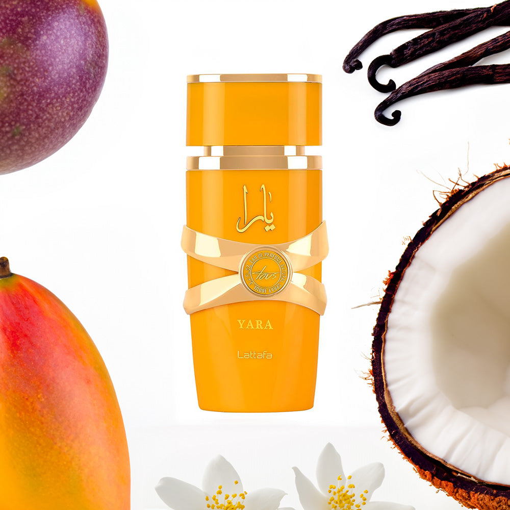 - Fragrance Notes: Mango, Coconut, Passionfruit, Jasmine, Heliotrope, Orange Blossom, Vanilla, Musk, Cashmeran
