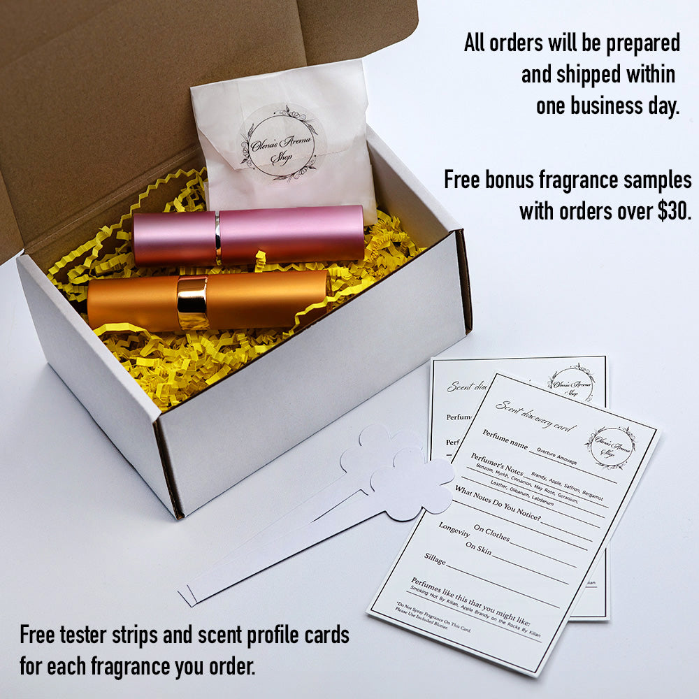 Original bottle not included with sample/decant purchase. Olena’s Aroma Shop rebottles authentic fragrances from the original bottle into sample bottles and atomizers.